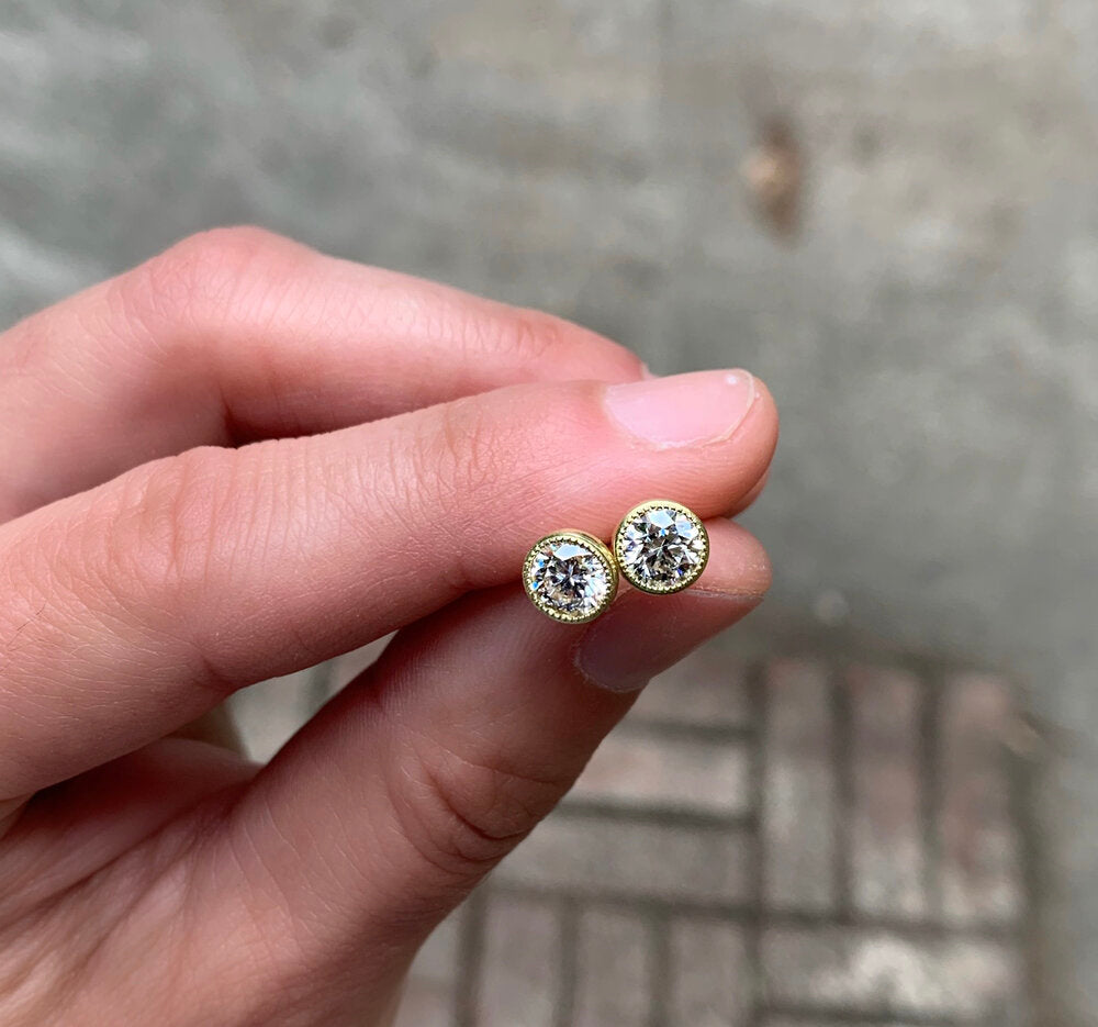 Set in 18k Yellow Gold bezel settings with hand-beaded details
