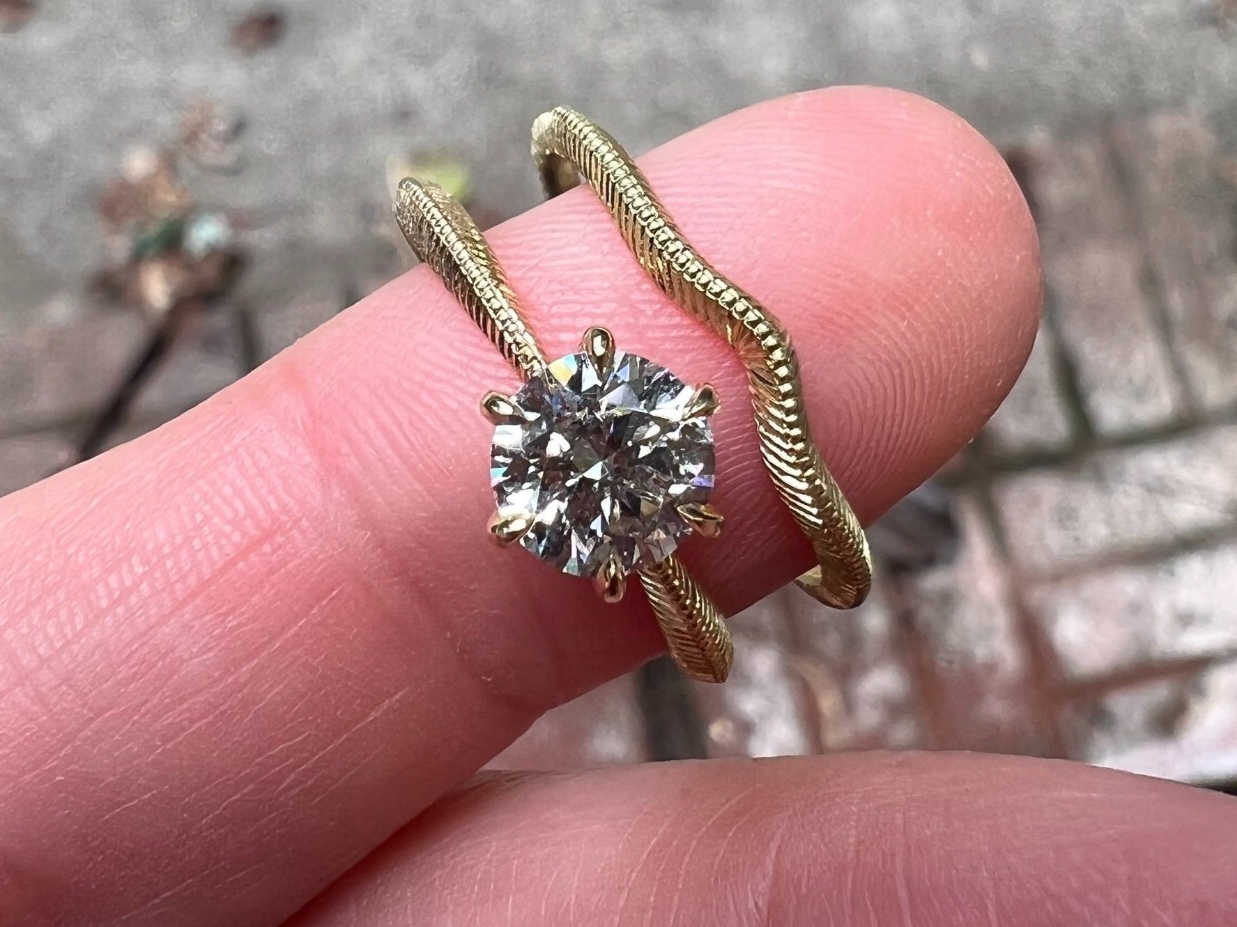 1ct Round Brilliant Diamond Ring with Hand Engraving
