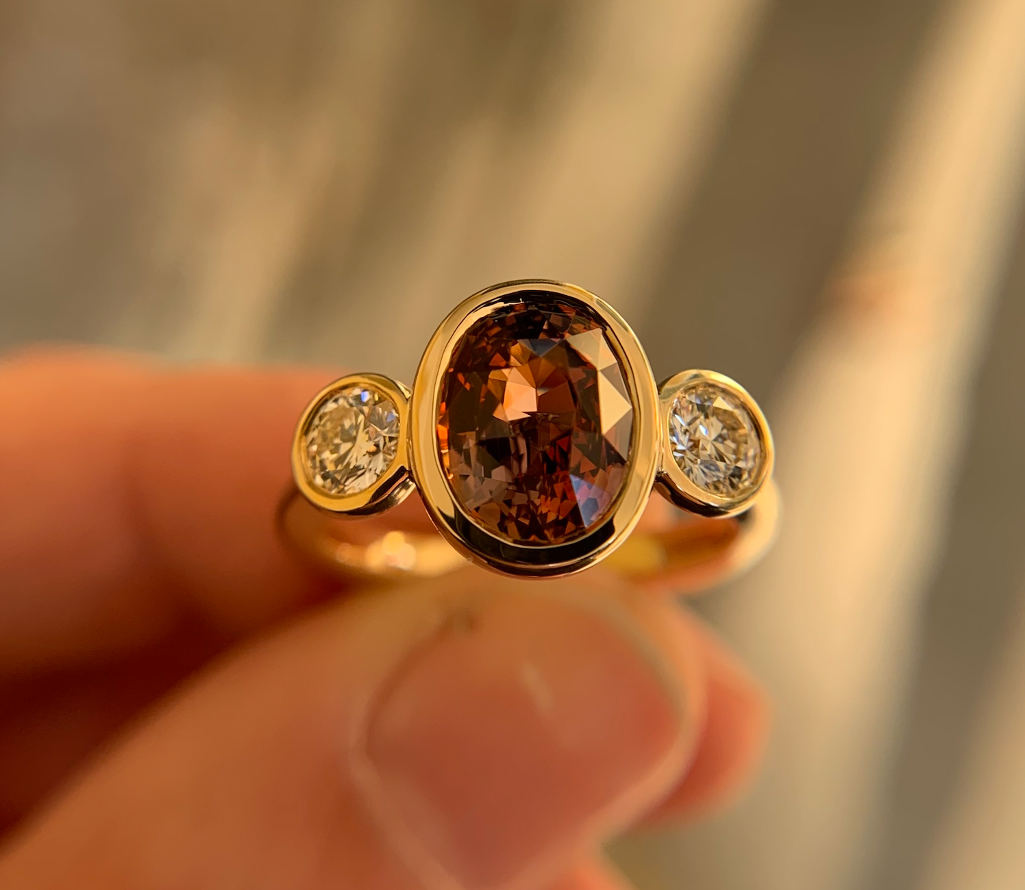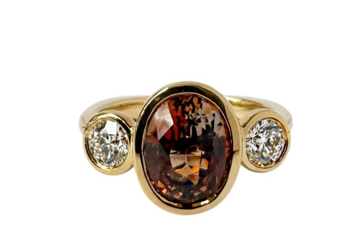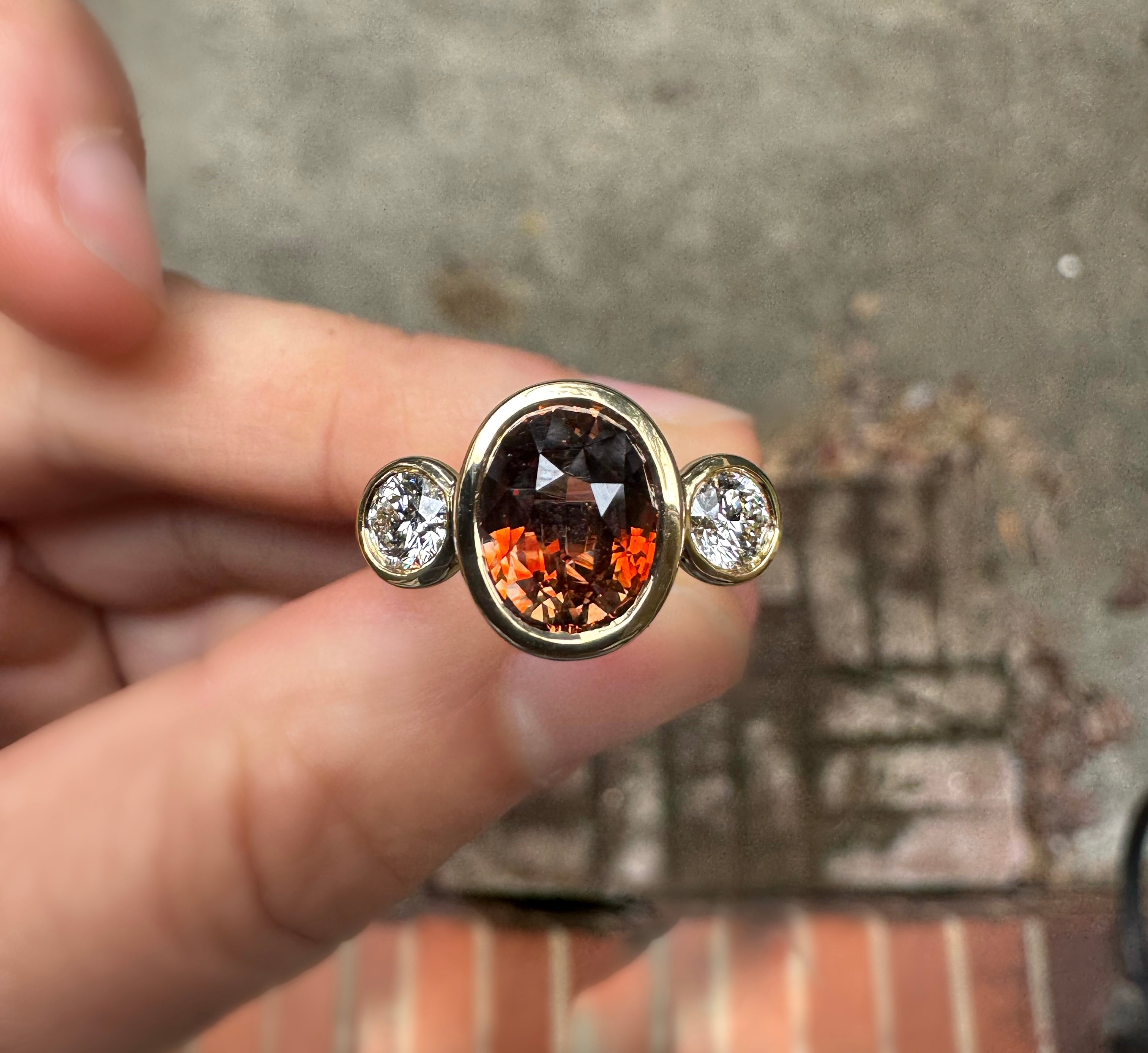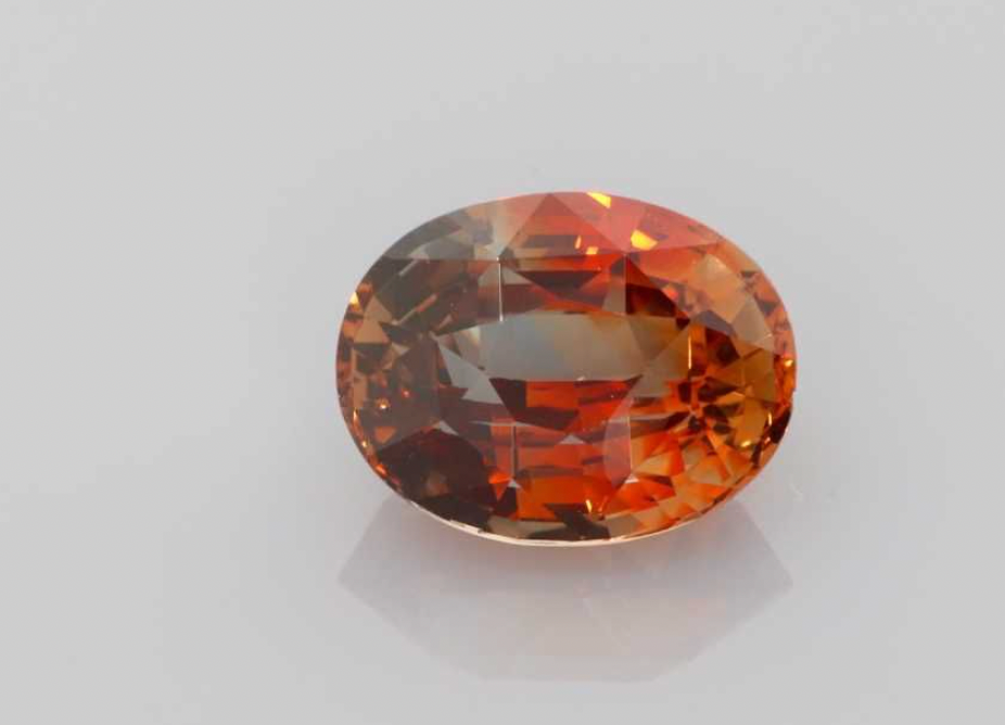 2.66 carat bi-color sapphire- light burnt orange to deep orange