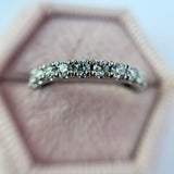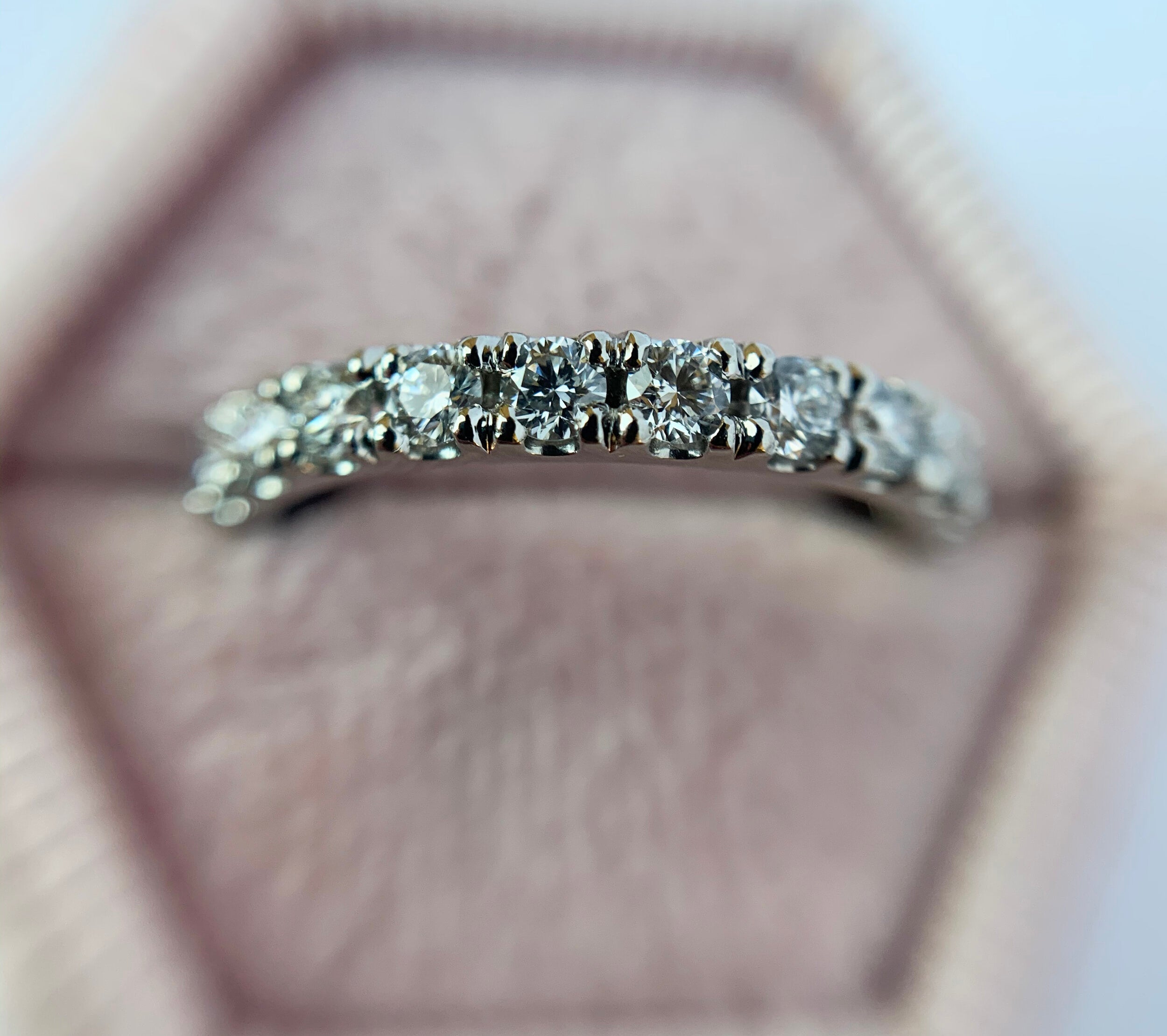 We use 100% recycled precious metals, Canadian-mined diamonds, Montana-mined sapphires, and recycled African-mined diamonds sourced from vintage jewelry. Learn more here.