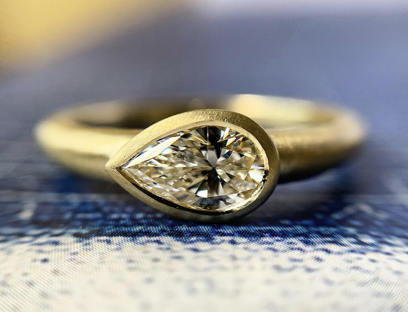Pear Shaped Diamond Bezel Ring - Half Carat