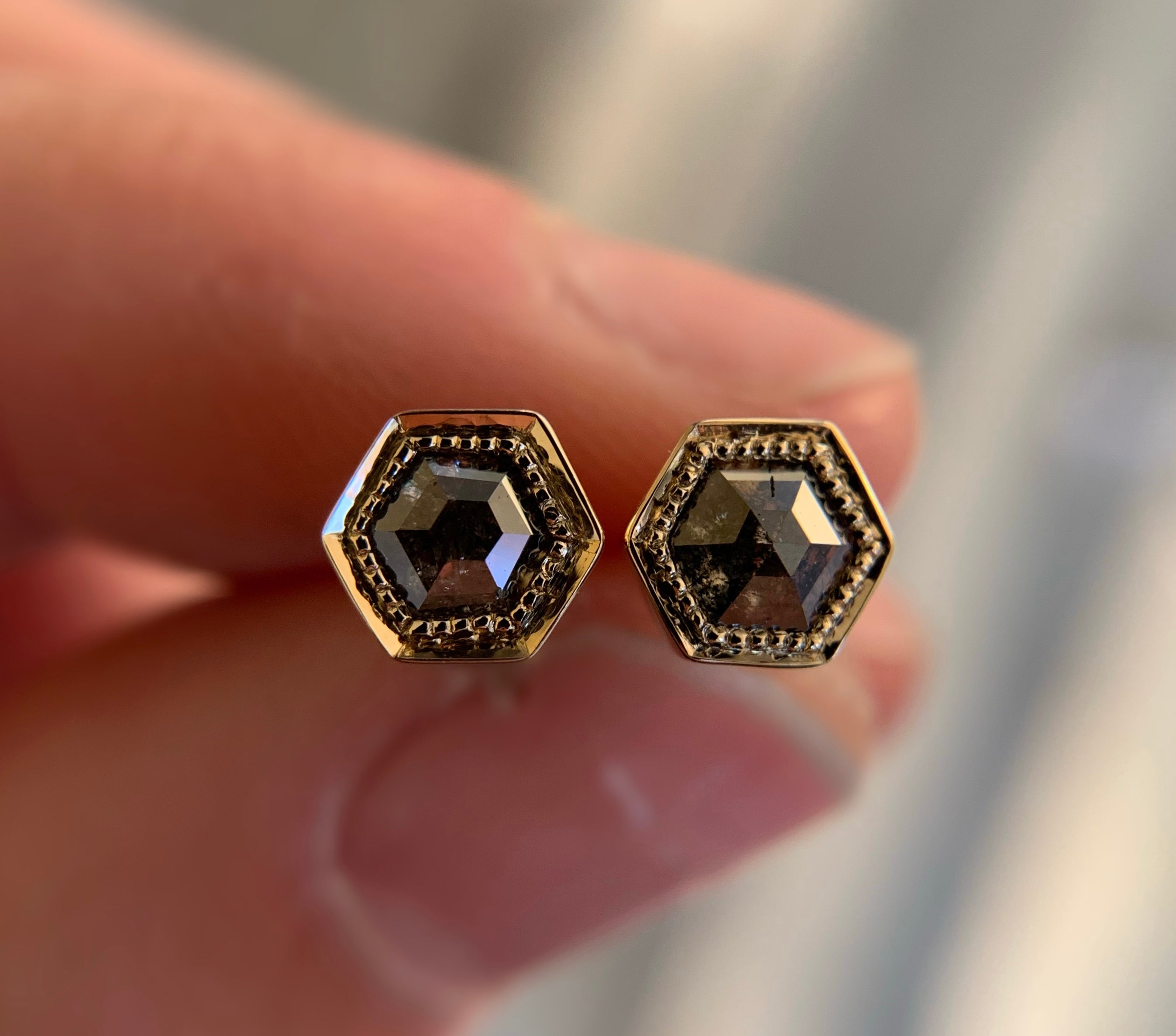 Salt and Pepper Diamond Hexagon Stud Earrings