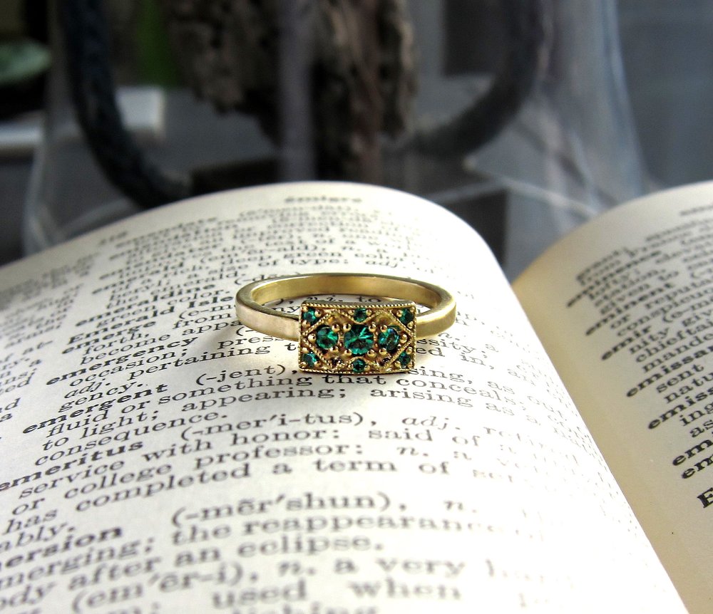 18k Gold & Emerald Engagement Band or Celebration Ring.