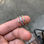 We use 100% recycled precious metals, Canadian-mined diamonds, Montana-mined sapphires, and recycled African-mined diamonds sourced from vintage jewelry. Learn more here.