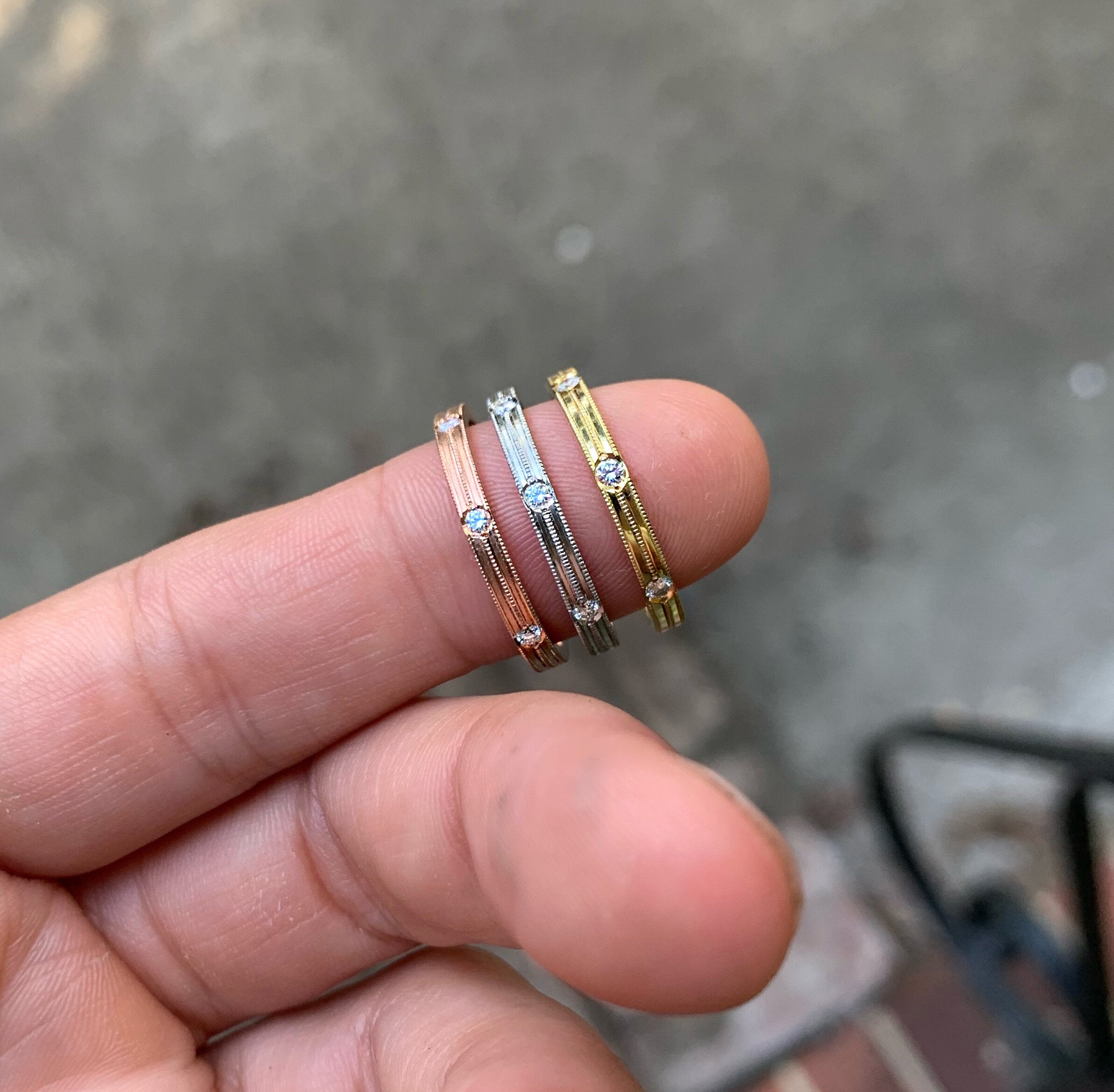 Milgrain is a jewelry decoration, commonly found on antique jewelry. It means "A thousand grains" in French. When used in connection with jewelry, it refers to a decoration on the edges of a piece of jewelry, usually a ring.