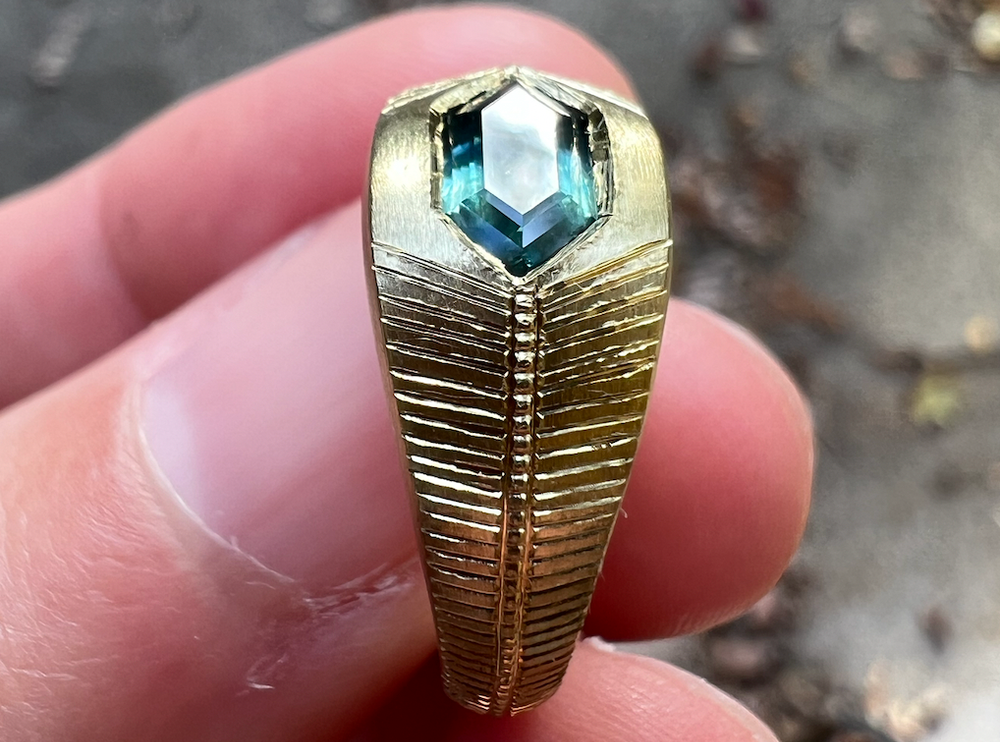 Green Blue Montana Mined Sapphire - Elongated hexagon cut