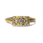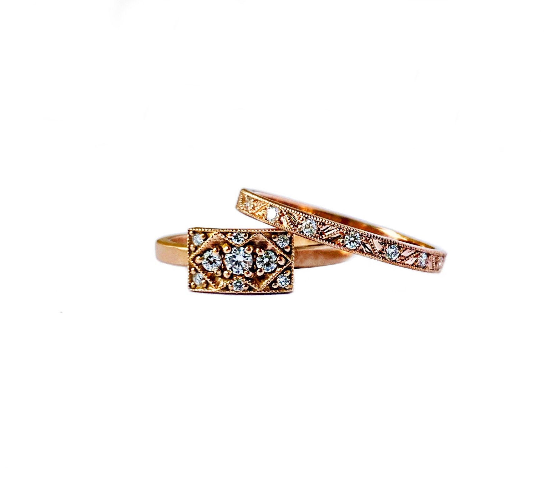 We use 100% recycled precious metals, Canadian-mined diamonds, Montana-mined sapphires, and recycled African-mined diamonds sourced from vintage jewelry. Learn more here.