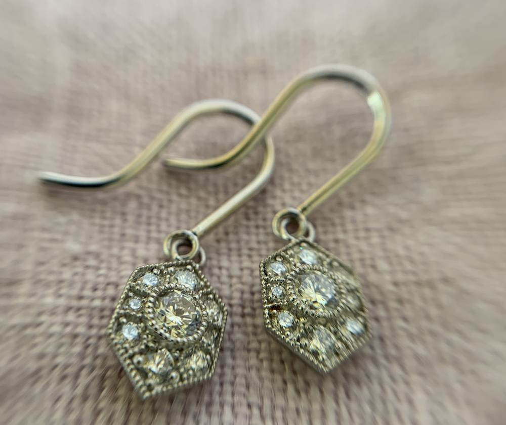 We use 100% recycled precious metals, Canadian-mined diamonds, Montana-mined sapphires, and recycled African-mined diamonds sourced from vintage jewelry. Learn more here.