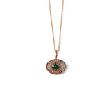 Rose Gold, Diamond, and Sapphire Necklace with Milgrain Details.